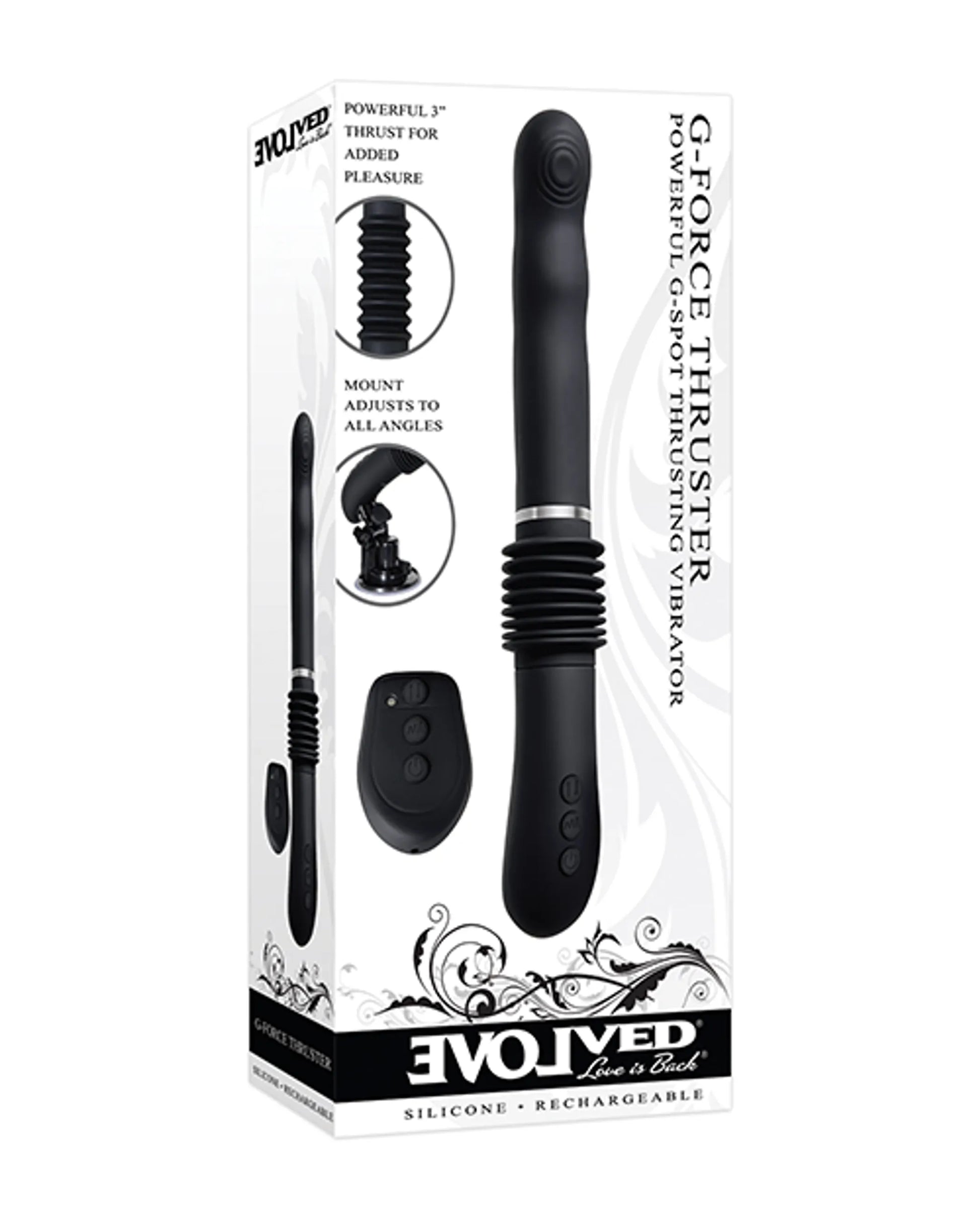 Meet the Evolved G-Force Thruster — a powerful thrusting machine that rocks your G-spot + leaves you thoroughly satisfied. Feel the earth-moving vibrations deep inside as you groove to the circle textures against your G-spot. The thrusting shaft seems to have a mind of its own.